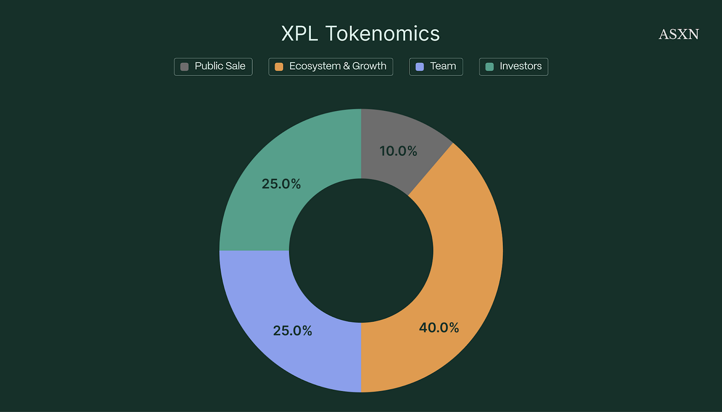 At TGE, the XPL token will initially only have ~18% of the total supply circulating, with the remaining supply locked up per the vesting schedules. The initial token supply will be coming from the public sale allocation and 8% of the total XPL supply from the ecosystem and growth allocation. Supply on TGE will look as follows therefore: